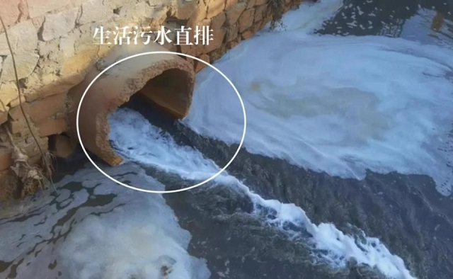 圖為2021年12月5日,中央生態(tài)環(huán)保督察組現(xiàn)場督察發(fā)現(xiàn),松浦支渠松浦排澇橋下雨水口大量生活污水直排。