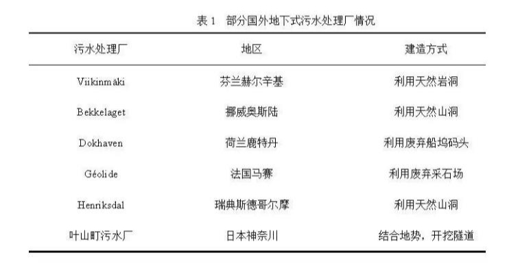 在人口密度更高,城市用地更為緊張,社會經濟更加發達的一些歐美、日本等國家(圖5),地下式污水處理廠并非遍地開花,幾乎是鳳毛麟角。此外,國外少有的一些地下式污水處理廠案例(表1)中,其建設選址、緣由也非盲目跟風,主要是充分利用天然山洞、廢棄地下建筑等地形順勢而為,因此而大大減少了建設所需的工程量??梢?,地下污水處理廠的建設應因地制宜,不應盲目跟風。