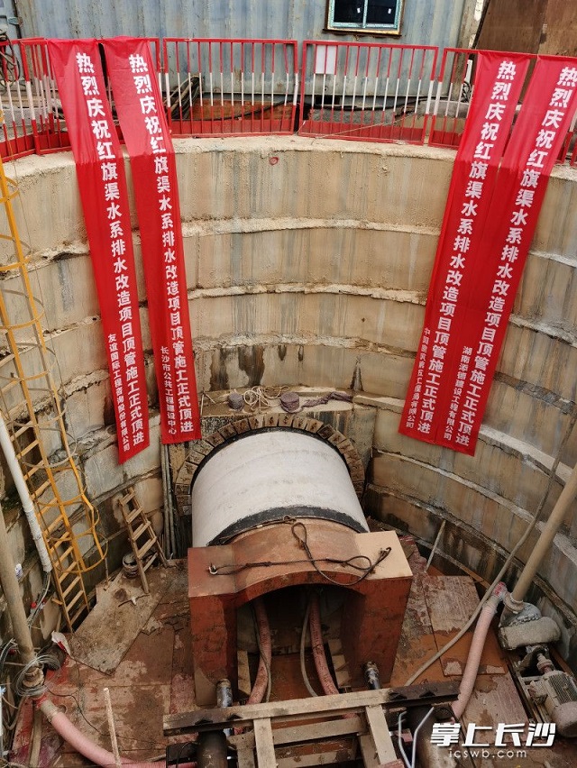 9月7日,紅旗渠水系排水改造項(xiàng)目正式實(shí)現(xiàn)頂管始發(fā),正式進(jìn)入主體施工階段。均為長沙晚報(bào)全媒體記者 陳煥明 通訊員 劉志強(qiáng) 攝影報(bào)道