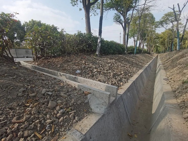在趙重公路新豐支路至滬常高速段,由于道路兩側(cè)地塊標(biāo)高較高,排水溝淤堵、填埋導(dǎo)致雨天經(jīng)常出現(xiàn)內(nèi)澇情況。針對該路段積水原因,改造工程重點解決路面積水匯流及排水出路問題,在非機(jī)動車道外側(cè)新建流水槽,將非機(jī)動車道外側(cè)積水引流至道路外側(cè),翻挖新建邊溝、雨水連通管和雨水口,實現(xiàn)及時排水。“之前道路設(shè)計是自排水的,依靠道路兩側(cè)的土溝收集雨水,隨著這幾年道路周邊地塊開發(fā),土溝已經(jīng)不滿足排水要求,所以按照五年一遇的暴雨降水量,在道路兩側(cè)增設(shè)混凝土明溝收集道路雨水,現(xiàn)在施工已經(jīng)完成,觀察下來,道路沒有發(fā)生過積水問題。”青浦區(qū)道路運輸管理事務(wù)中心工作人員徐華介紹。
