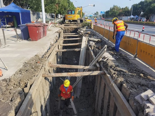 在外青松公路千新公路至油墩港路段,積水點改造項目進(jìn)入到排水管道鋪設(shè)和雨水井施工的收尾工作。據(jù)該項目負(fù)責(zé)人介紹,以往每逢暴雨期間,外青松公路、千新公路交叉口積水嚴(yán)重,對周邊人員正常出行造成很大的影響。為徹底解決積水問題,在外青松公路道路新建雙排管口直徑為1000毫米雨水管道,自千新公路西側(cè)起排,收集道路路面及兩側(cè)地塊雨水后排入油墩港,減輕片區(qū)的排水壓力,解決困擾周邊居民已久的內(nèi)澇問題。“之前的排水系統(tǒng)年代久,管道積淤情況嚴(yán)重,而且這邊道路地勢比較低,非常容易積水。這次改造施工主要以大口徑的管道的排設(shè)為主,在非機(jī)動車道上增設(shè)進(jìn)水井,在雨量大的時候可以及時水排走,達(dá)到解決積水問題的效果。”積水點改造項目經(jīng)理張源說。