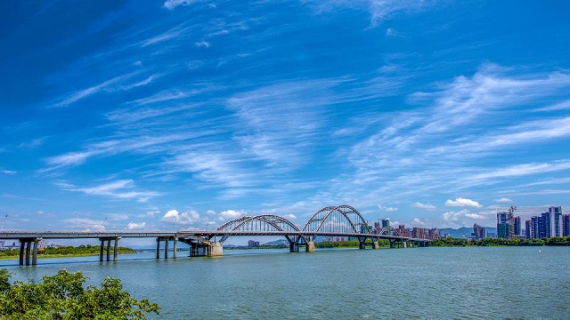 天藍水碧交相輝映下的贛江吉安段美景。(吉安市河長辦供圖)
