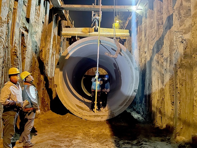 城建團隊定制巨型管道,對燕郊整個排水管網進行差異化升級。