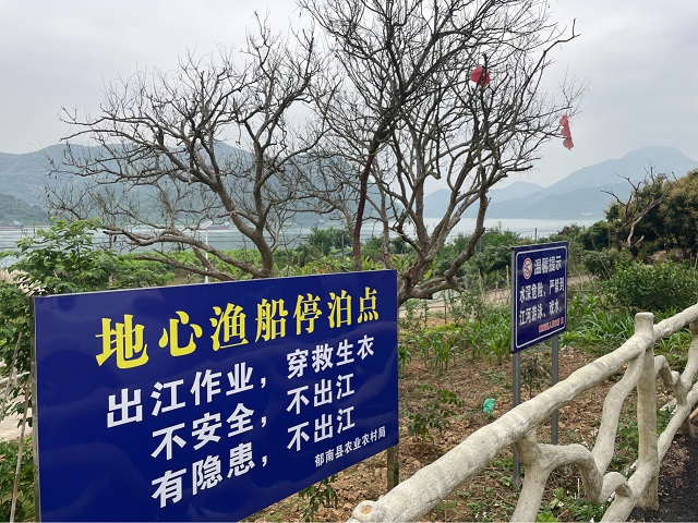 順著坡路走進村子,公告欄里貼著《環北部灣廣東水資源配置工程(郁南段)建設征收地心村委員會一村村民小組土地公示》,由郁南縣建城鎮人民政府蓋章,日期為2023年2月23日。公告欄對面,懸掛著一條紅色長條幅,上面的黃色大字格外顯眼:禁漁時間:2023年3月1日0時至6月30日24時。