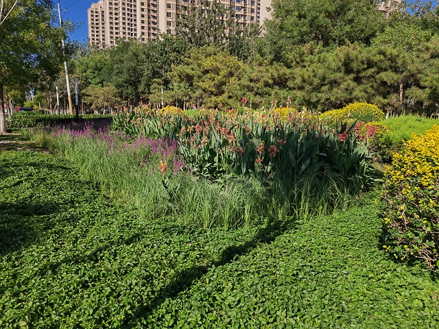 搖曳的美人蕉、綻放的千屈菜、翠綠的馬藺……這些植被在點(diǎn)“靚”環(huán)境的同時(shí),也承擔(dān)起了輔助調(diào)蓄和凈化徑流雨水等實(shí)際功能。自2016年4月,天津市獲批國(guó)家第二批海綿城市建設(shè)試點(diǎn)以來(lái),天津高新區(qū)持續(xù)推進(jìn)海綿城市建設(shè)走向縱深,渤龍湖科技園綠地海綿改造項(xiàng)目建設(shè)已取得顯著進(jìn)展。