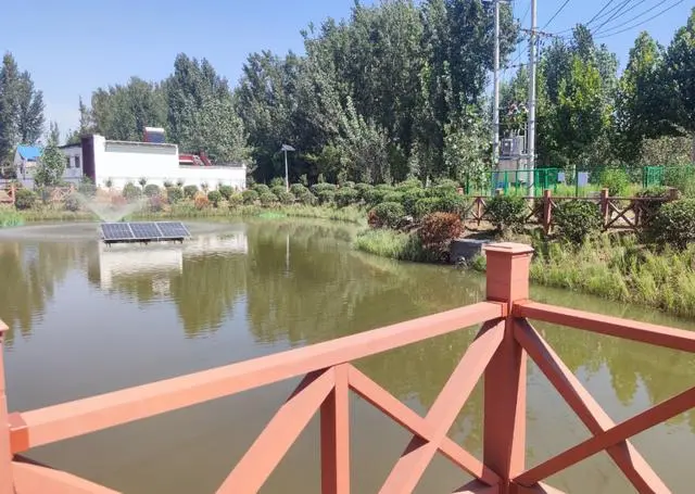 蘇玥心是劉莊村的網(wǎng)格員,她每天都會(huì)到池塘旁巡視,確保沒(méi)有污水流進(jìn)池中,并在發(fā)現(xiàn)垃圾后及時(shí)清理。“噴泉是由太陽(yáng)能進(jìn)行發(fā)電,節(jié)能環(huán)保。池中還養(yǎng)殖著魚類,起到凈化水質(zhì)、監(jiān)測(cè)水質(zhì)的作用。”蘇玥心說(shuō),在夏季雨水較多時(shí),她會(huì)增加巡查次數(shù)。“發(fā)現(xiàn)污水排入或是池中有垃圾時(shí),我會(huì)進(jìn)行清理和上報(bào),相應(yīng)的工作人員都會(huì)及時(shí)響應(yīng),守護(hù)這來(lái)之不易的清澈。”她說(shuō),如今這里空氣濕潤(rùn)清新,每天傍晚都有不少村民到此散步休閑。