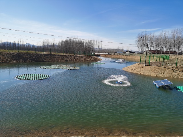 嘉祥縣水務(wù)局副局長王新榮介紹:“我們在每一處坑塘都配套了太陽能曝氣設(shè)備,增加水氧含量,打造‘凈水、增氧、控藻’的多功能復(fù)合生態(tài)系統(tǒng)。同時,修建回流井,在陰雨天及夏季高溫天氣啟動運行,補充水體流通,促進(jìn)水系循環(huán),提升水體自凈能力。”