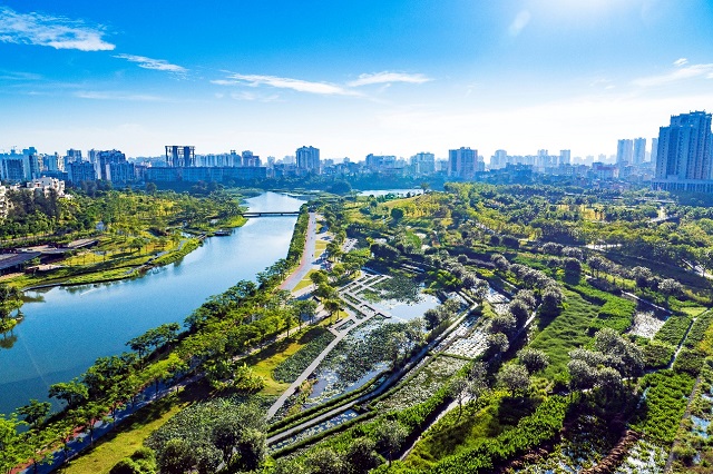 圖片說明:海南省海口市美舍河通過生態化的設計將灰色基礎設施改造成富有韌性的綠色基礎設施。(采訪對象供圖)