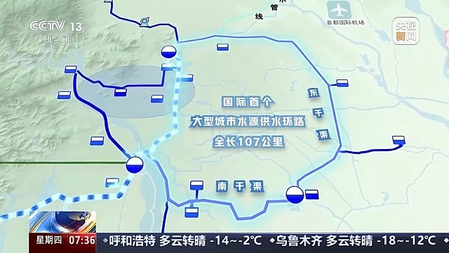 南水進(jìn)入北京后,主要是通過暗涵和管道來進(jìn)行輸水,從2014年年底南水北調(diào)中線工程通水開始,北京就建起了一條地下“輸水巨龍”,這條巨龍沿著北京的北五環(huán)、東五環(huán)、南五環(huán),與沿著西四環(huán)的南水北調(diào)中線主干線相連,形成了一條全長107公里的供水環(huán)路。