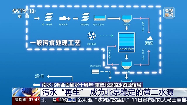 污水“再生” 成為北京穩(wěn)定的第二水源 在用好每一滴南水的同時(shí),北京還在污水處理上推動(dòng)技術(shù)創(chuàng)新,讓原本處理后排走的生活污水,變成可循環(huán)利用的“再生水”。