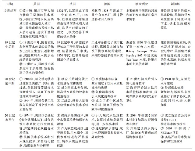 在中世紀的歐洲,清潔的水源極為稀缺,導致人們常常以酒代水來應對飲水需求。隨著時間的推移,一些創新的水處理裝置開始出現,例如意大利人發明的砂濾裝置,逐漸緩解了水質問題。與之相比,我國在同一時期的供水系統則主要依賴于井水和河水,隋唐時期還通過大規模水利工程滿足城市和農業用水需求,展現了早期水資源管理的智慧。進入近代,歐洲的現代供水系統迅速發展,尤其是19世紀中期的供水網絡建設,奠定了現代城市供水的基礎。與此同時,我國在19世紀末才開始引入現代供水系統,新中國成立后加大基礎設施建設投入,改革開放后則進入快速發展階段。隨著我國經濟的增長和人民生活水平的提高,社會對飲用水質量的要求日益提升。特別是在經濟發達的大城市,實現高品質自來水已經成為城市供水系統的重要目標。然而,盡管我國供水系統取得了長足進步,但在供水管理、技術創新和水質監測等方面,與發達國家相比仍有一定差距,各個方面還需要借鑒國外先進國家的經驗。因此,本文通過對發達國家供水系統建設和管理的對比分析,為我國建設高品質自來水提供借鑒和參考。