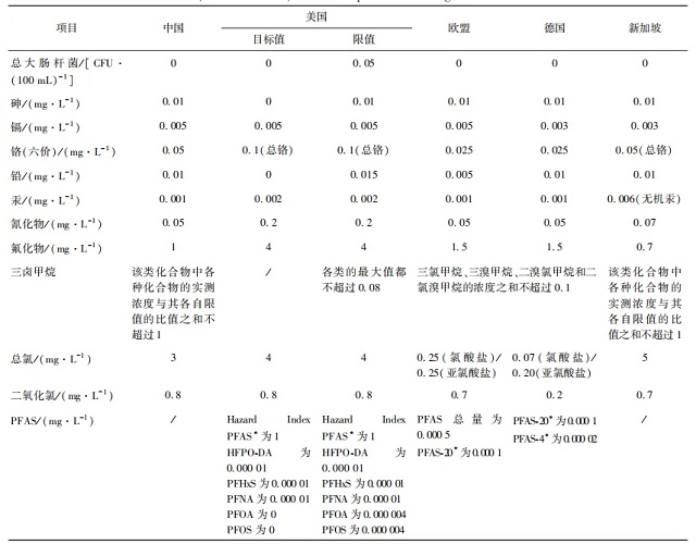 在污染物限值方面,《生活飲用水衛生標準》(GB5749—2022)對主要污染物的限值與這些發達國家相當,部分指標甚至接近或高于其標準。然而,在新污染物(如PFAS)的管控方面,當前標準尚未對其進行具體覆蓋(表5)。