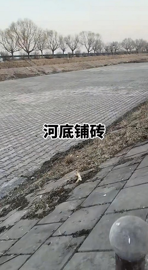 網友拍攝的視頻顯示,街邊一處運河的河道鋪滿了碎土,另一側河道表面則整整齊齊地鋪滿了灰色的磚,這些呈“工”字形的磚緊密地鋪設在一起。記者注意到,該運河的河道內沒有河水,河道兩岸則長滿了雜草。