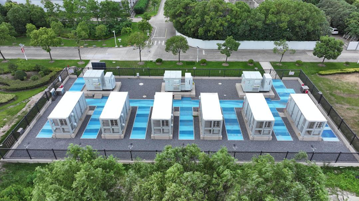 儲(chǔ)能項(xiàng)目:智慧調(diào)控實(shí)現(xiàn)“削峰填谷”與安全運(yùn)行 竹園7.5兆瓦/20.64兆瓦時(shí)儲(chǔ)能項(xiàng)目位于竹園污水公司(浦東新區(qū)高東鎮(zhèn)東電路160號(hào))西北角,占地面積約940平方米,采用室外集裝箱式布置,由6臺(tái)3.44兆瓦時(shí)儲(chǔ)能電池集裝箱(含磷酸鐵鋰電池、EMS、BMS、熱管理系統(tǒng)及消防系統(tǒng)等核心設(shè)備)和3臺(tái)2.5兆瓦變流變壓一體機(jī)組成,經(jīng)過(guò)電纜接入3號(hào)、4號(hào)主變6千伏母線側(cè)。項(xiàng)目于2024年5月30日開(kāi)工,9月29日啟動(dòng)設(shè)備試運(yùn)行,2025年8月29日完成竣工驗(yàn)收,運(yùn)行初期即展現(xiàn)強(qiáng)勁效能。