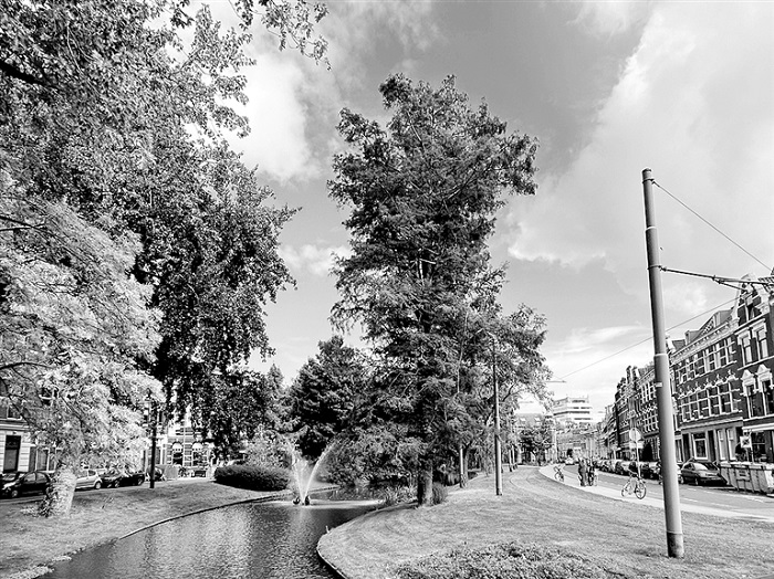 “城市熱島效應”日益加劇,在市中心和老城區尤為明顯,成為鹿特丹迫切需要應對的氣候挑戰。為此,鹿特丹通過一系列景觀策略為城市降溫,核心舉措是系統性增加“涼爽場所”——面積超過200平方米、炎熱時體感溫度能維持在38℃以下的公共空間。市政府與迪弗科托景觀事務所共同繪制“涼爽場所地圖”與“距離地圖”,評估現有涼爽空間分布,識別距離居民區超過300米(即世界衛生組織建議標準)的服務盲區,重點關注市中心、老城區及部分新建社區。為實現降溫目標,鹿特丹采用綜合性景觀干預方案:增種樹木和設置遮陽篷提供蔭涼;利用噴泉與植被增強蒸發冷卻效應;采用淺色鋪裝及增加綠化減少地表熱量吸收;結合水體景觀直接降溫;增設街道家具、提升步行空間品質,激活未被充分利用的區域。這些措施被整合進覆蓋全市38個街區的“涼爽公共空間機會地圖”,將降溫策略與城市更新項目緊密結合,優先改善服務不足的區域。